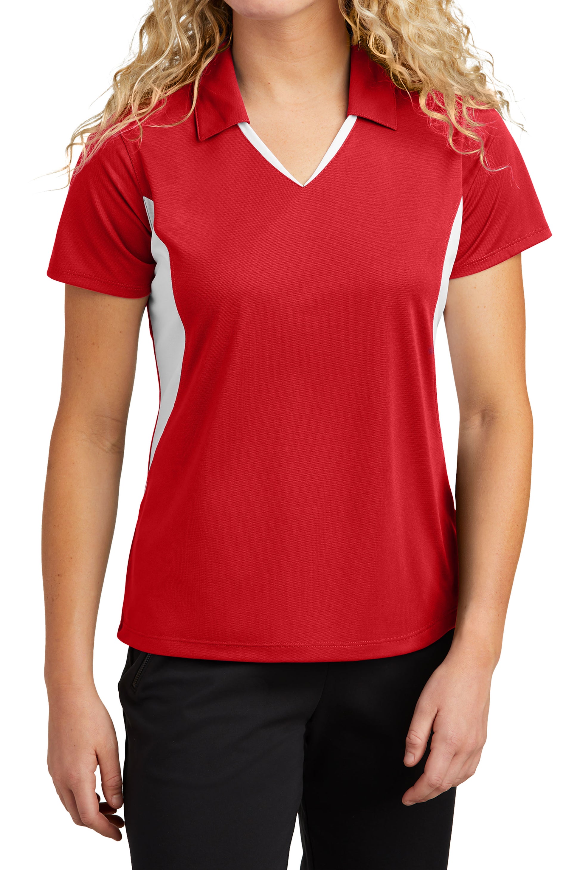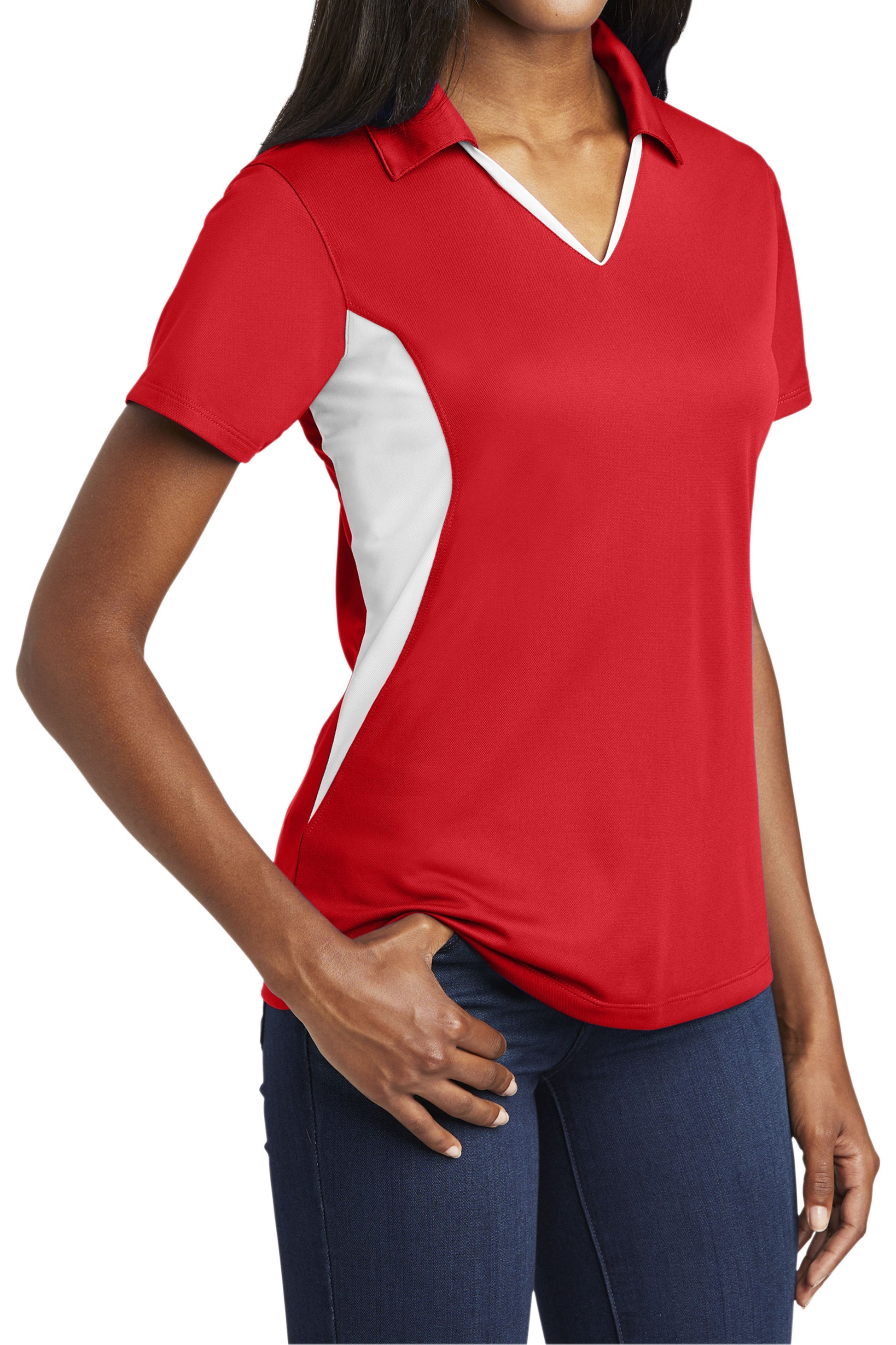 TCTG Team Spirit Ladies Wicking Colorblock Polo – College, Sports, High School & Fan Apparel - Red/ White